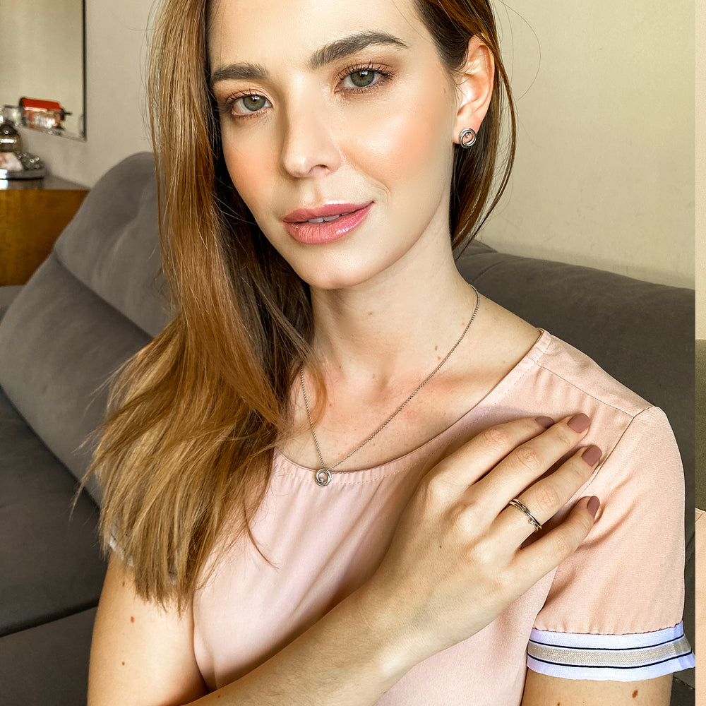 Anel Twinkle em Prata com Diamante - design transversal