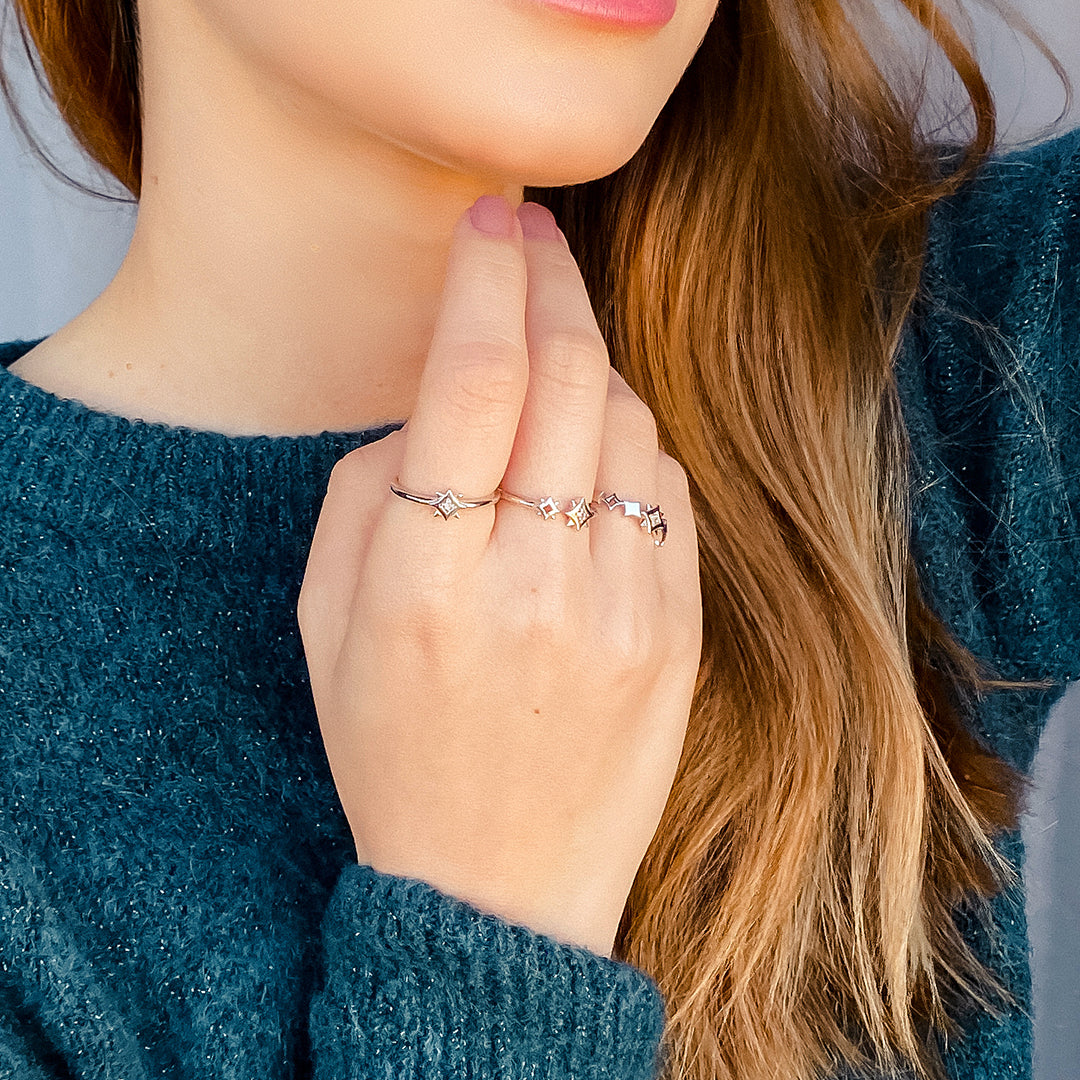 Anel Twinkle em Prata com Diamante Estrela Solitário