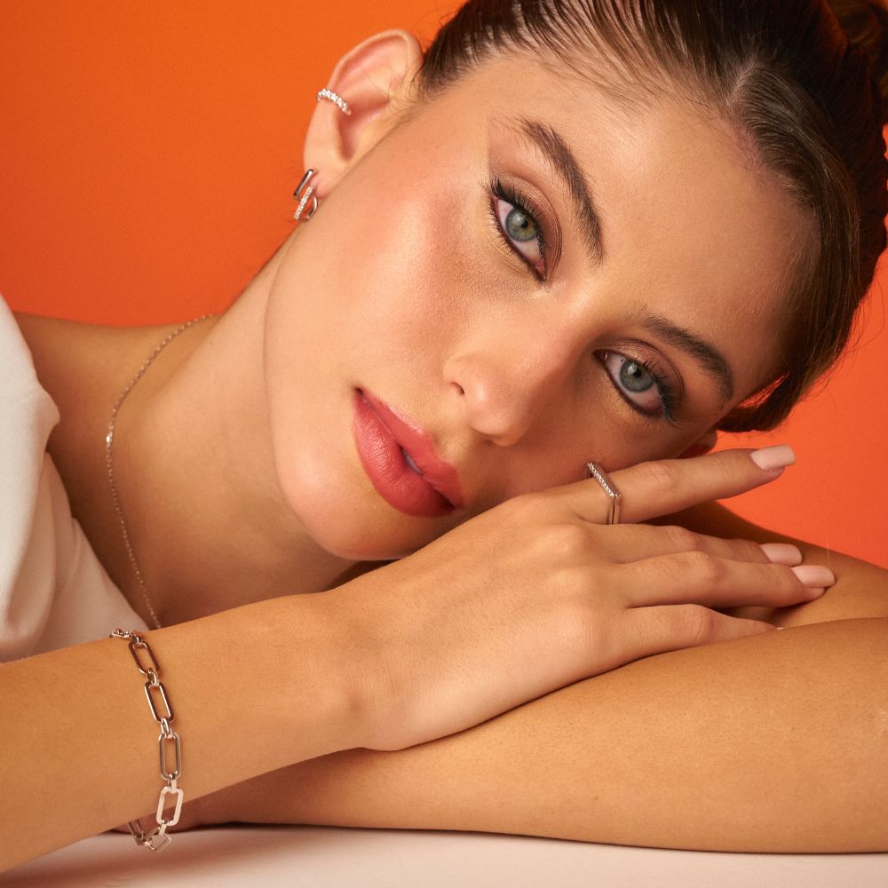 Na vanguarda do futuro, surge a linha de joias Trinity, inspirada nos elos que simbolizam força e interconexão. Este anel quadrado, sofisticado e moderno, transcende a moda convencional para ecoar a essência dos laços humanos através de um design inovador e arquitetônico. Meticulosamente trabalhado em prata 925, a peça destaca uma linha contínua de topázios brancos que celebram a pureza e a luminosidade. É a escolha ideal para quem busca adicionar um toque de contemporaneidade disruptiva ao visual ou para eternizar momentos especiais com a intemporalidade das gemas naturais.