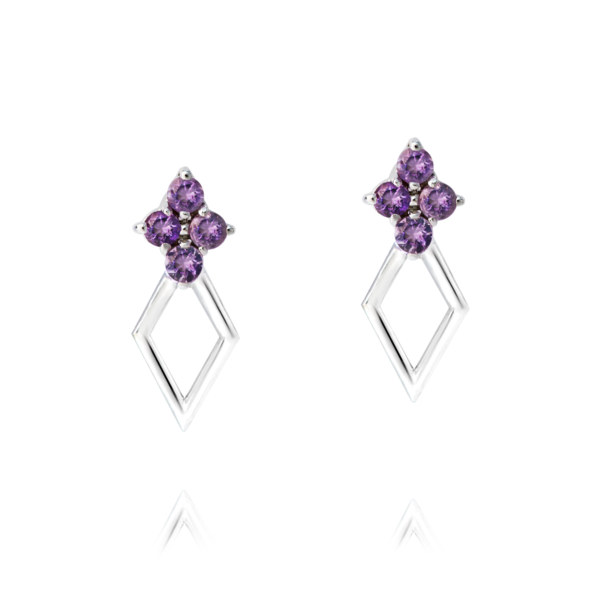 Elegância intensa em um formato compacto. Com um design exclusivo, este brinco de Ametista cravejada destaca-se pelo seu formato, oferecendo um brilho concentrado e sofisticado.