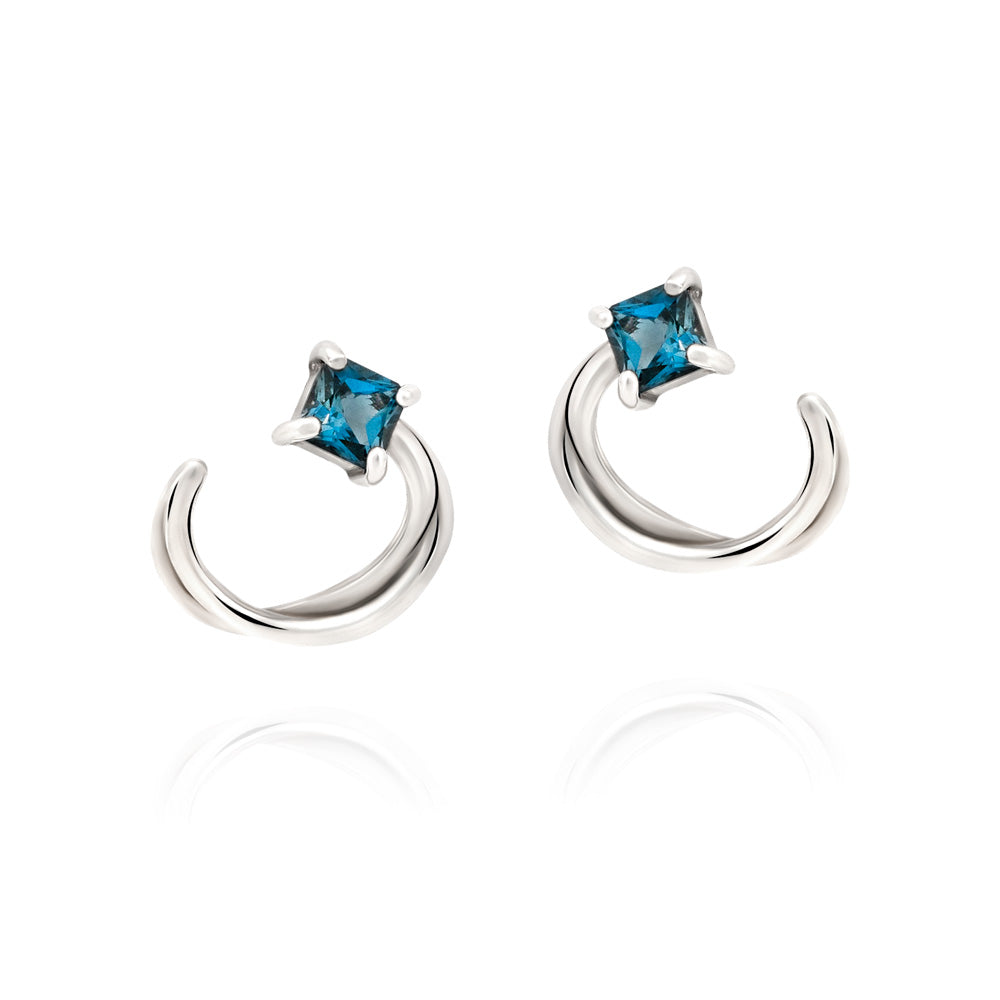 Na era da conectividade virtual, a coleção Echo surge inspirada nos círculos, símbolos de unidade e continuidade. Estes brincos minimalistas e elegantes não só adornam, mas também ecoam as emoções de quem os usa. Elegância em Prata com Topázio London