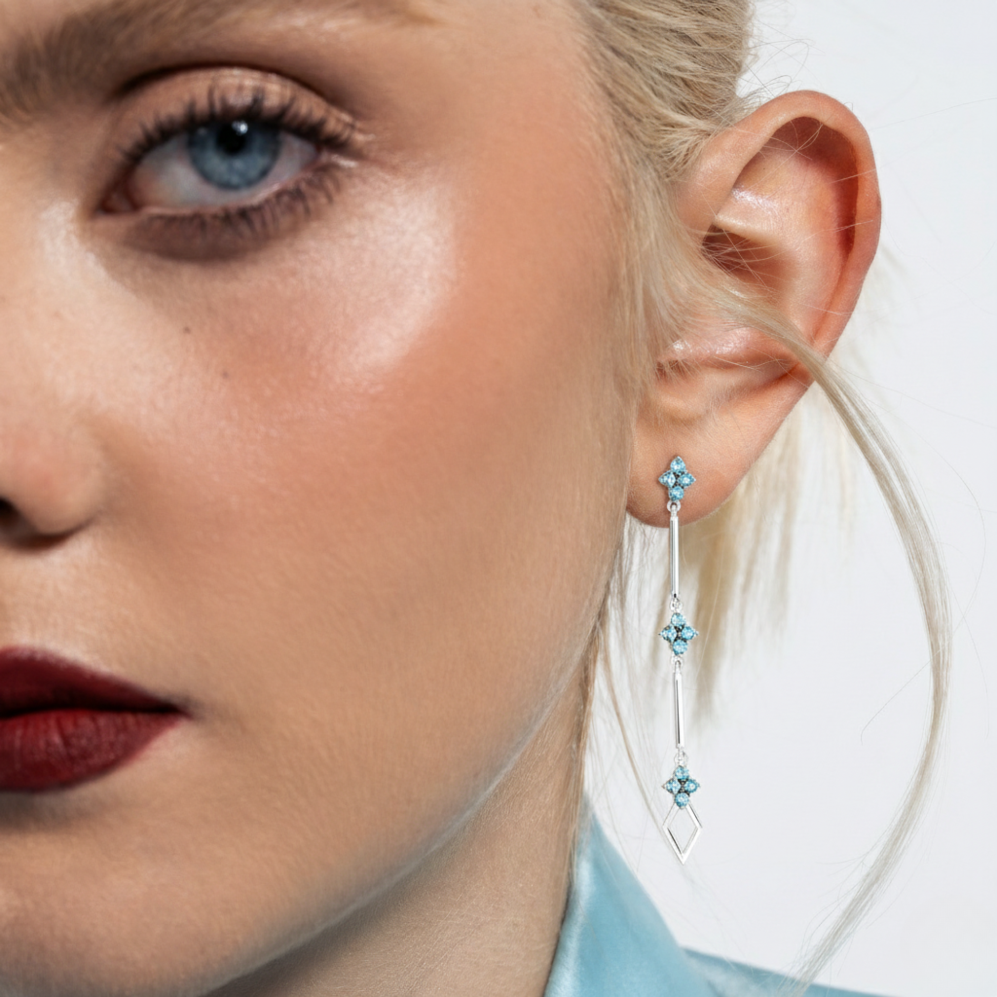 Design exclusivo que evoca a leveza e a clareza do céu. Este brinco longo em Prata destaca a tonalidade suave e cristalina do Topázio Sky, perfeito para iluminar o rosto com elegância sutil e moderna.