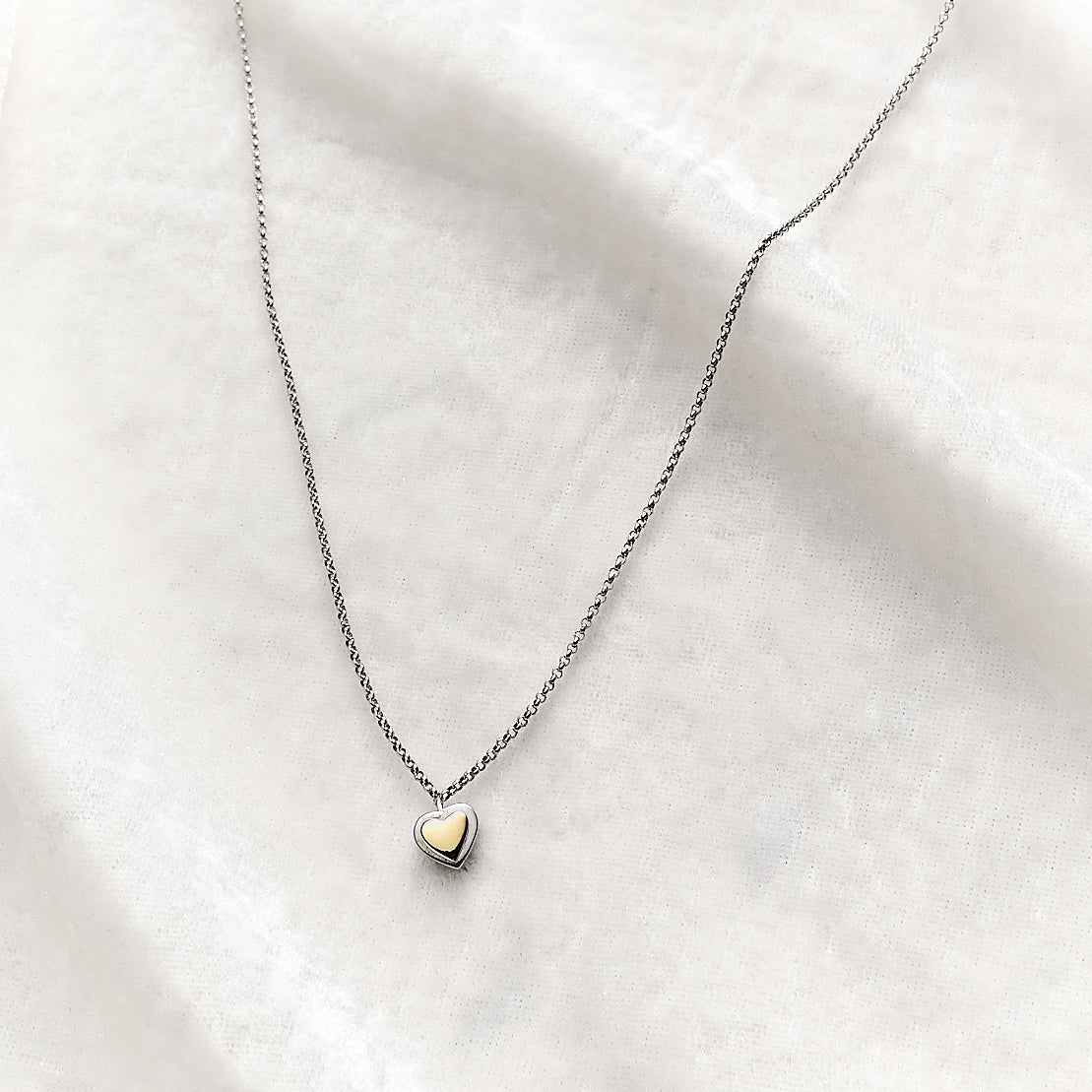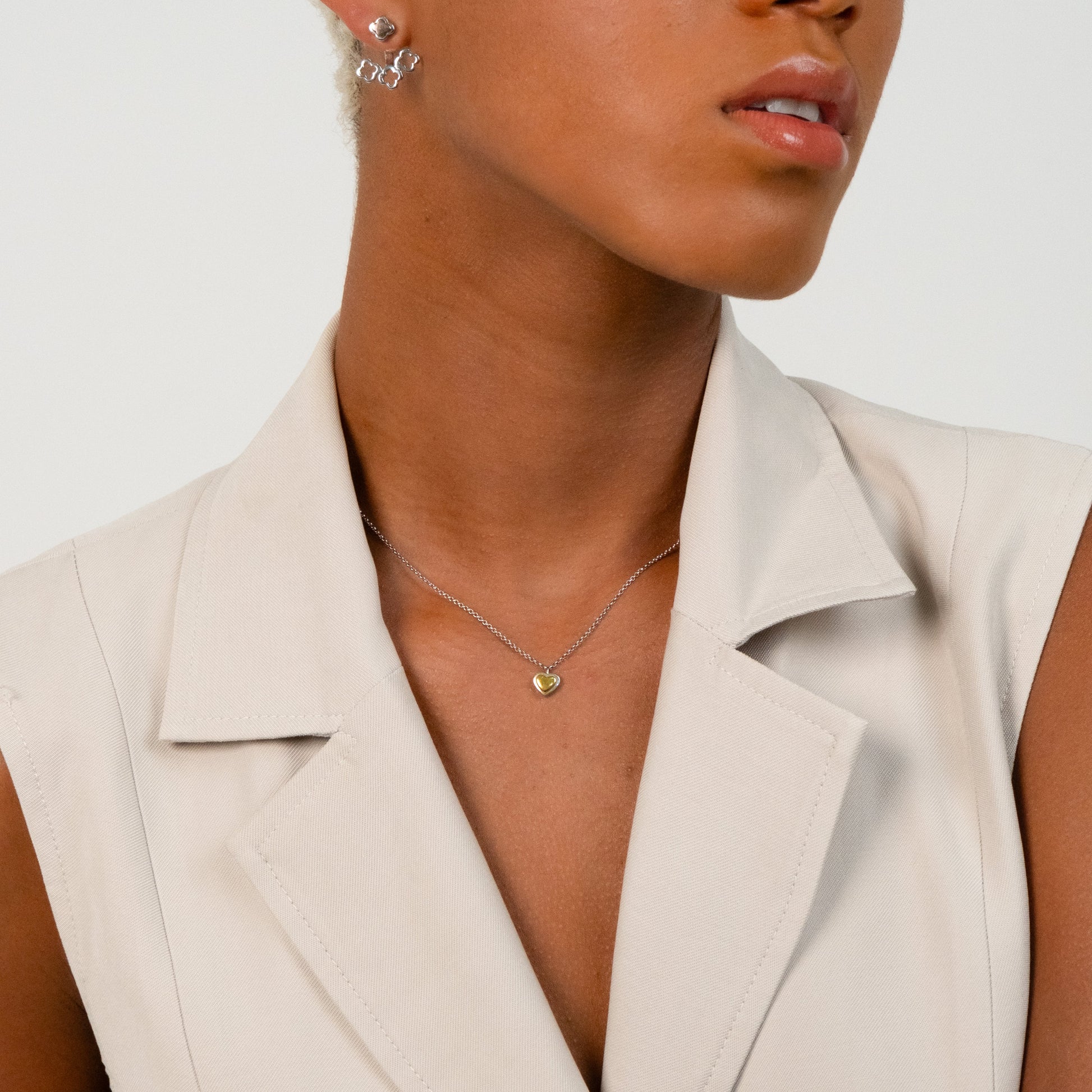 O colar da Coleção Romantic é a união perfeita entre a elegância clássica da prata e do ouro. O pingente em formato de coração cria um centro reluzente em ouro 18K, uma joia que ilumina o colo com delicadeza e poder. Peça versátil e atemporal, desenhada para quem não abre mão de um brilho refinado e cheio de significado.