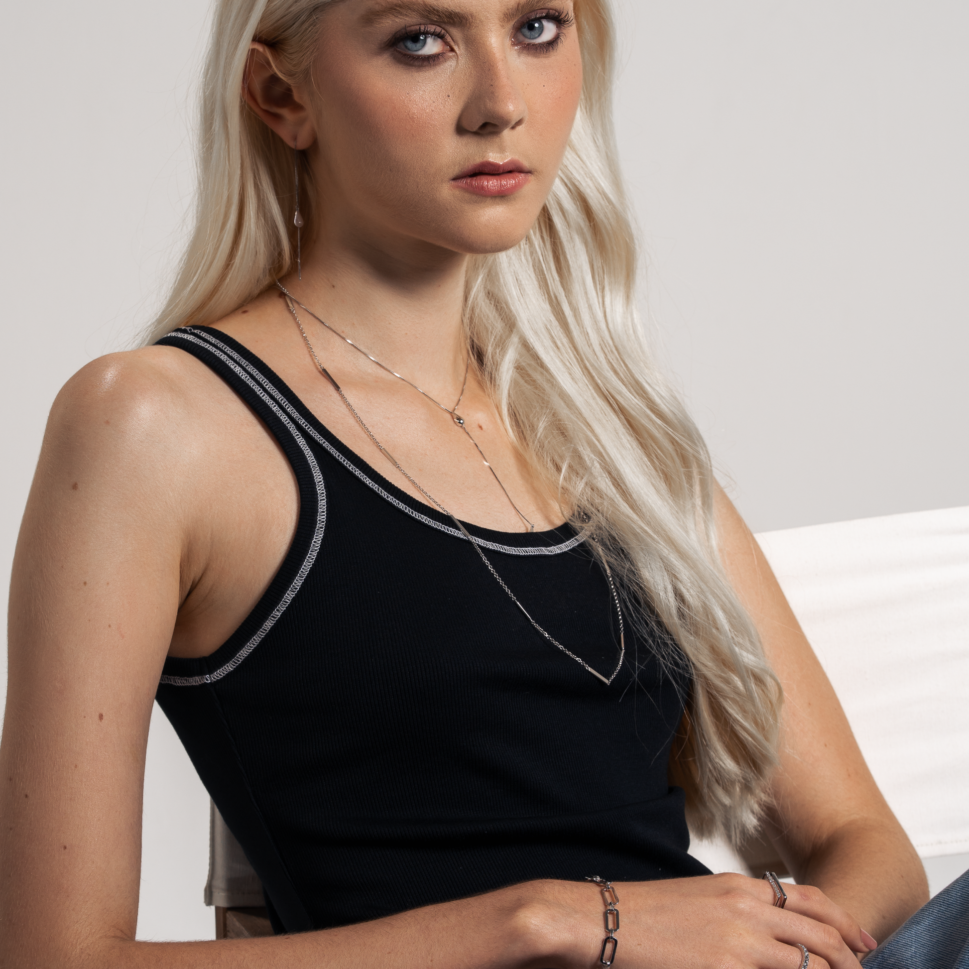 São peças selecionadas e lapidadas com cuidado, perfeitas para sobreposições ou para ser o destaque principal em um look de festa ou formal. A estética minimalista garante versatilidade, mantendo sempre a sofisticação da prata.