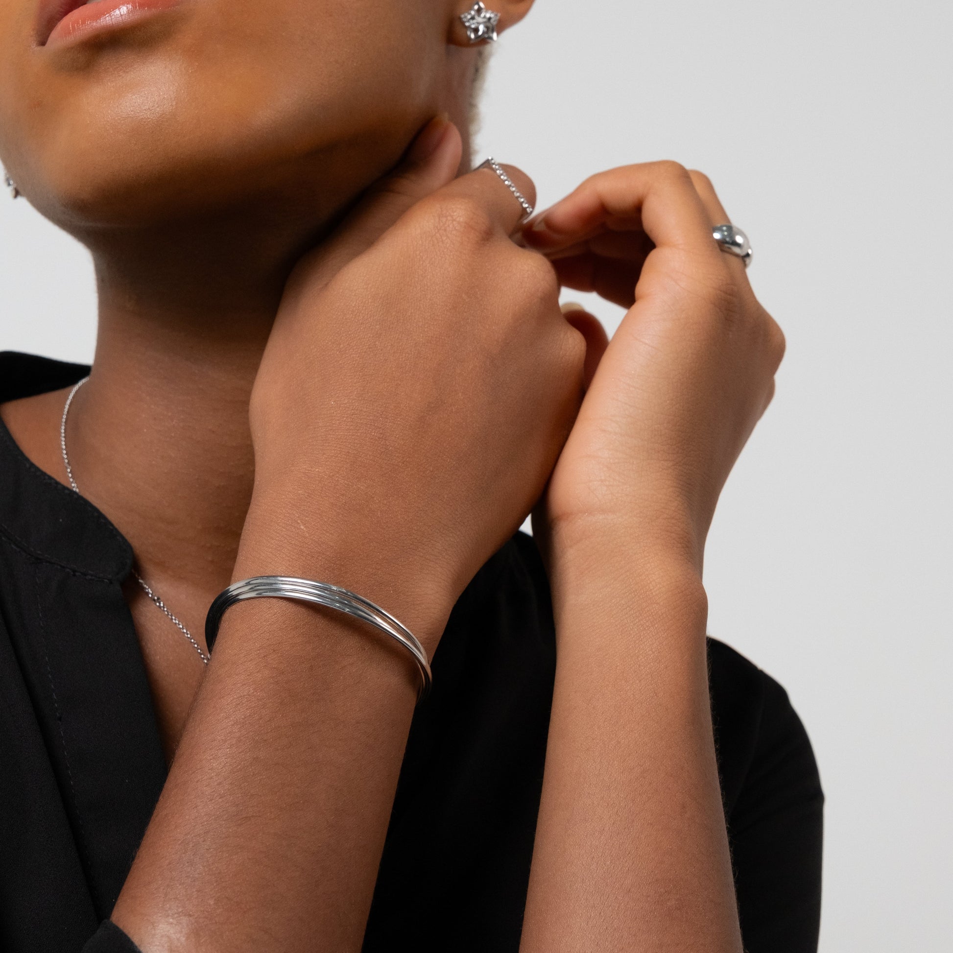 Na era da conectividade virtual, a coleção Echo surge inspirada nos círculos, símbolos de unidade e continuidade. Esta pulseira minimalista e elegante não só adorna, mas também ecoa as emoções de quem os usa. Elegância em Prata Descubra a sofisticação da coleção Echo. Feitos em prata 925, a pulseira celebra a elegância moderna.